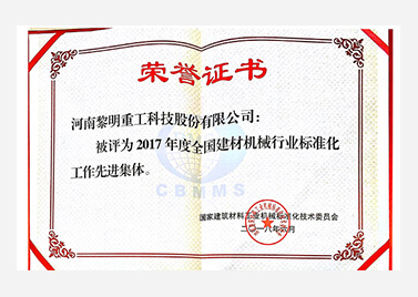 • 建材機械行業(yè)標(biāo)準化工作先進集體