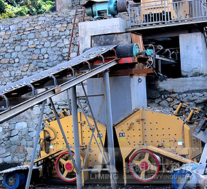 石料由給料機(jī)均勻地送進(jìn)粗碎機(jī)進(jìn)行初步破碎,然后,產(chǎn)成的粗料由膠帶輸送機(jī)輸送至反擊式破碎機(jī)進(jìn)行進(jìn)一步破碎,細(xì)碎后的石料進(jìn)振動(dòng)篩篩分出不同規(guī)格的石子,不滿足粒度要求的石子返料進(jìn)反擊式破碎機(jī)再次破碎。大塊石料經(jīng)料倉(cāng)由振動(dòng)給料機(jī)均勻地送進(jìn)顎式破碎機(jī)進(jìn)行粗碎,粗碎后的石料由膠帶輸送機(jī)送到反擊式破碎機(jī)進(jìn)行進(jìn)一步破碎;細(xì)碎后的石料由膠帶輸送機(jī)送進(jìn)振動(dòng)篩進(jìn)行篩分,篩分出幾種不同規(guī)格的石子,滿足粒度要求的石子由成品膠帶輸送機(jī)送往成品料堆;不滿足粒度要求的石子由膠帶輸送機(jī)返料送到反擊式破碎機(jī)進(jìn)行再次破碎,形成閉路多次循環(huán)。成品粒度可按照用戶的需求進(jìn)行組合和分級(jí),為保護(hù)環(huán)境,可配備輔助的除塵設(shè)備。