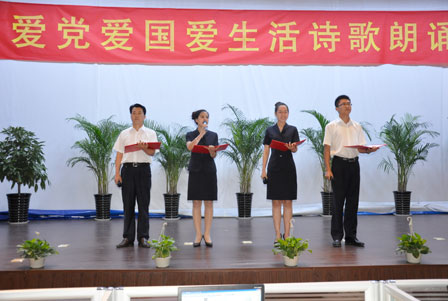 朗誦者時(shí)而低回婉轉(zhuǎn),時(shí)而嘹亮高亢,把詩歌的意境表達(dá)淋漓,一首首聲情并茂的贊歌,一幕幕飽含深情的表演,博得一浪浪如潮水般的雷鳴掌聲。