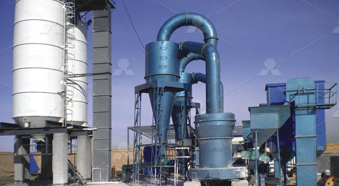 第二階段:磨粉破碎后的小塊石膏經(jīng)提升機(jī)送至料倉(cāng),再經(jīng)振動(dòng)給料機(jī)將其均勻定量的送入磨粉機(jī)研磨室內(nèi)進(jìn)行研磨。