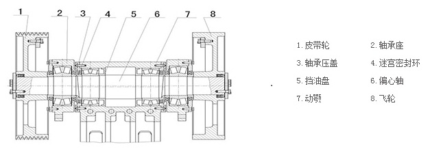 檢查飛、槽輪配重中心位置是否正確,槽輪配重中心應(yīng)通過(guò)主軸中心孔與主軸偏心孔相對(duì)應(yīng)180度成為一條直線。