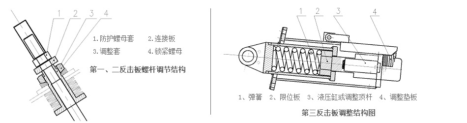 排料口尺寸大小應(yīng)按所需產(chǎn)品的粒度和處理能力進(jìn)行調(diào)整,在調(diào)整排料口時(shí)應(yīng)先松開(kāi)拉緊彈簧,待調(diào)整好后,再適當(dāng)調(diào)整彈簧的脹緊程度,以防肘板在工作時(shí)脫落,詳見(jiàn)調(diào)整部件。