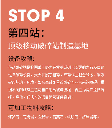 移動(dòng)破碎站是黎明重工傾力開(kāi)發(fā)的系列化新穎的巖石及建筑垃圾破碎設(shè)備,大大擴(kuò)展了粗碎、細(xì)碎作業(yè)概念領(lǐng)域,消除破碎場(chǎng)地、環(huán)境、繁雜基礎(chǔ)配置給破碎作業(yè)帶來(lái)的障礙,根據(jù)不同破碎工藝可自由組合破碎流程,為客戶(hù)提供簡(jiǎn)捷、低成本的項(xiàng)目運(yùn)營(yíng)硬件設(shè)施。