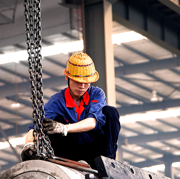 趙師傅整日和車間里的大家伙們“交鋒”。不足10℃的生產(chǎn)車間里,他正在固定10多噸重動(dòng)顎體上的吊裝環(huán),鼻子上滲滿汗珠。大家伙們的未來(lái)他不在意,他更在乎的是他們的現(xiàn)在,能不能對(duì)得起自己的“手藝”。