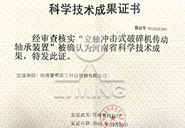 河南省科學(xué)技術(shù)成果獎(立軸沖擊式破碎機傳動軸承裝置)