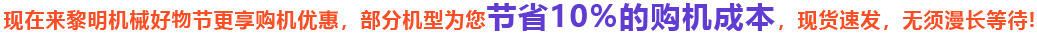 現(xiàn)在來黎明機械好物節(jié)更享購機優(yōu)惠,部分機型為您 節(jié)省10%的購機成本 ,現(xiàn)貨速發(fā),無須漫長等待。